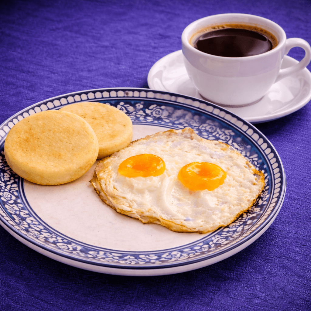 2 arepas, 2 huevos y café guayoyo. Ideal para empezar el día con energía.
